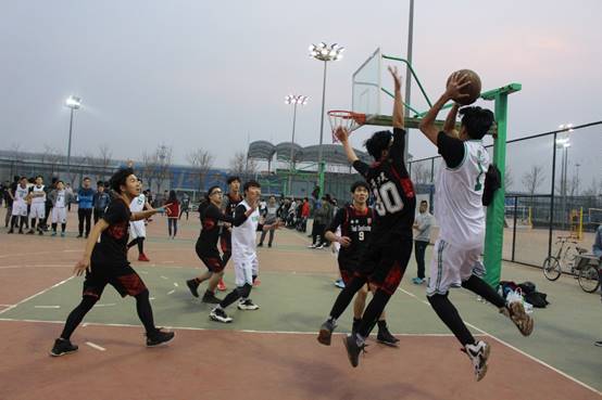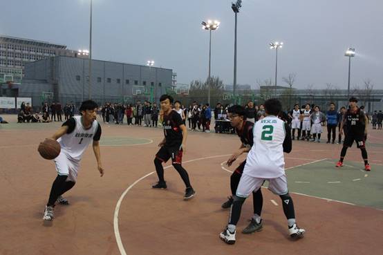 2018年4月9日晚18:30,“中财杯”篮球赛男子组的一场比赛在沙河校区篮球场展开,对阵双方为beat365vip官网登录入口与体育与经济管理学院。经历了不久前北京的四月飞雪,天气乍暖还寒,但我们的男篮队员不畏严寒,早早就来到了球场热身。在进行了简单热身活动之后,所有队员聚集在一起,齐声高喊“加油”,一起为即将上场的首发球员打气鼓劲。