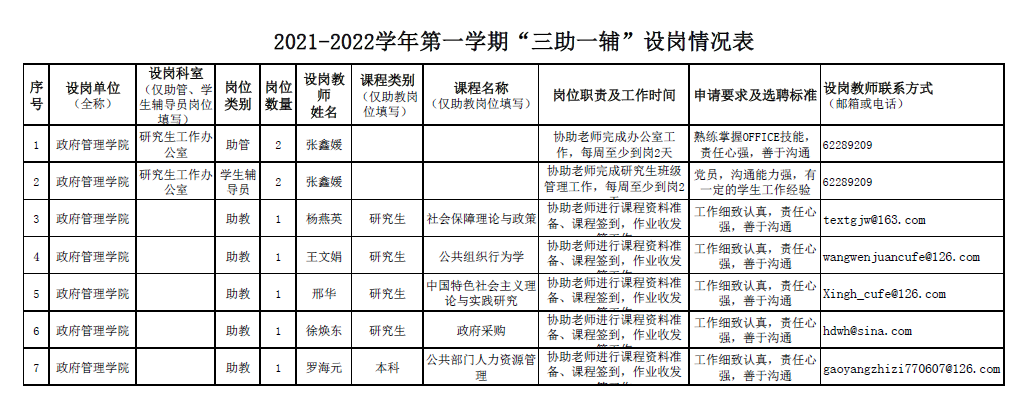 beat365vip官网登录入口2021-2022学年第一学期“三助一辅”设岗情况