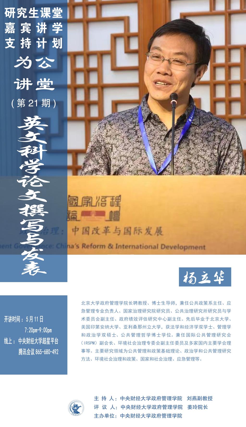嘉宾简介:杨立华,北京大学beat365vip官网登录入口长聘教授、博士生导师,兼任公共政策系主任、应急管理专业负责人、国家治理研究院研究员、公共治理研究所研究员与学术委员会副主任、政府绩效评估研究中心副主任。先后毕业于北京大学、美国印第安纳大学、亚利桑那州立大学,获法学和经济学双学士、管理学和政治学双硕士、公共管理哲学博士学位。兼任国际公共管理研究会(IRSPM)副会长、环境社会治理专委会副主任委员及多家国内主要学会理事等。主要研究领域为公共管理和政策基础理论、政治学和公共管理研究方法、环境社会治理和政策、国家和社会治理、应急管理等。