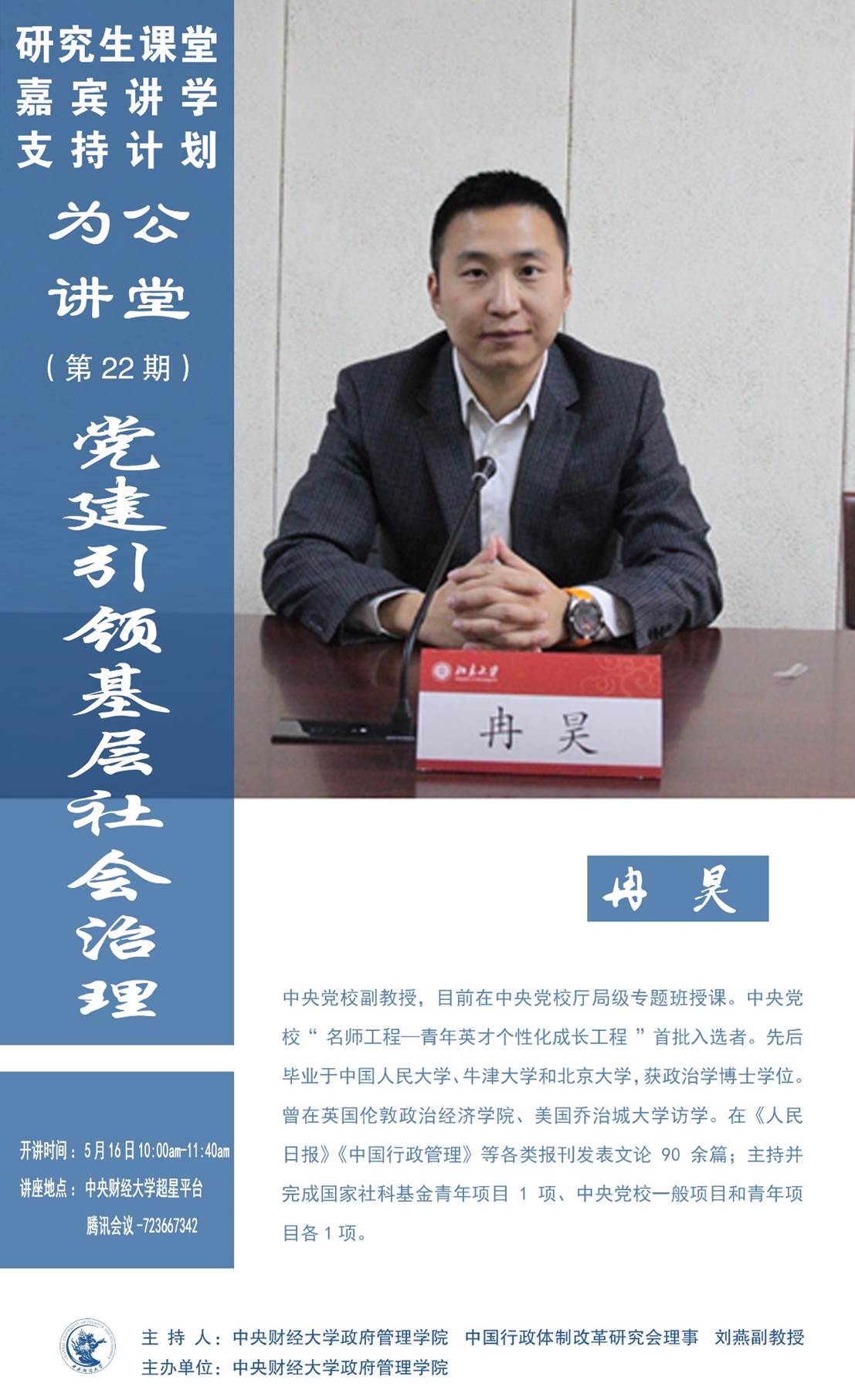 讲座时间:5月16日(周一)上午10:00