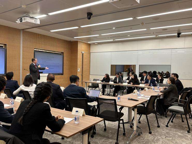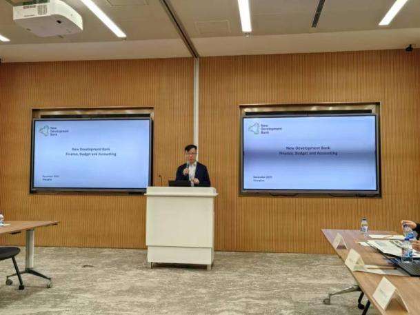 新开发银行主要部门的工作人员为实验班师生代表介绍了其所在部门的主要职能与活动。战略政策与合作局(Department of Strategy, Policies and Partnerships)的Amaani Bashir女士介绍了这一部门的基本工作以及新开发银行2022年至2026年的战略规划。风险管理局(Department of Risk Management)信用风险处(Division of Credit Risk)的首席专家(Principal Professional)Sidharth Kamani先生介绍了新开发银行战略的核心——风险管理,并且从风险防控的三条防线入手,介绍了新开发银行的信用风险工作。私营部门和非主权担保业务局(Department of Private Sector and Non-Sovereign Guaranteed Transactions)金融机构与市场处(Division of Financial Institutions and Markets)的Yawen Wu女士介绍了新开发银行的私营部门和非主权担保业务,私营部门和非主权担保业务局的首席专家Jingjing Han女士出席会议。财务预算与会计局(Department of Finance, Budget and Accounting)首席专家(Principal Professional)Dihao Chen先生介绍了财务预算与会计局的组织机构,展示了金融活动如何在新开发银行内开展,帮助同学们更深入地了解新开发银行的运营情况,财务预算与会计局风险控制处(Division of Financial Controller)处长(Chief)Paritosh Pandit先生出席了会议。司库及资金投资局(Department of Treasury and Portfolio Management)投资管理处(Division of Portfolio Management)处长(Chief)Leon Myburgh先生为实验班师生代表介绍了新开发银行司库及资金投资工作,帮助同学们细致地了解这一部门的核心职能。
