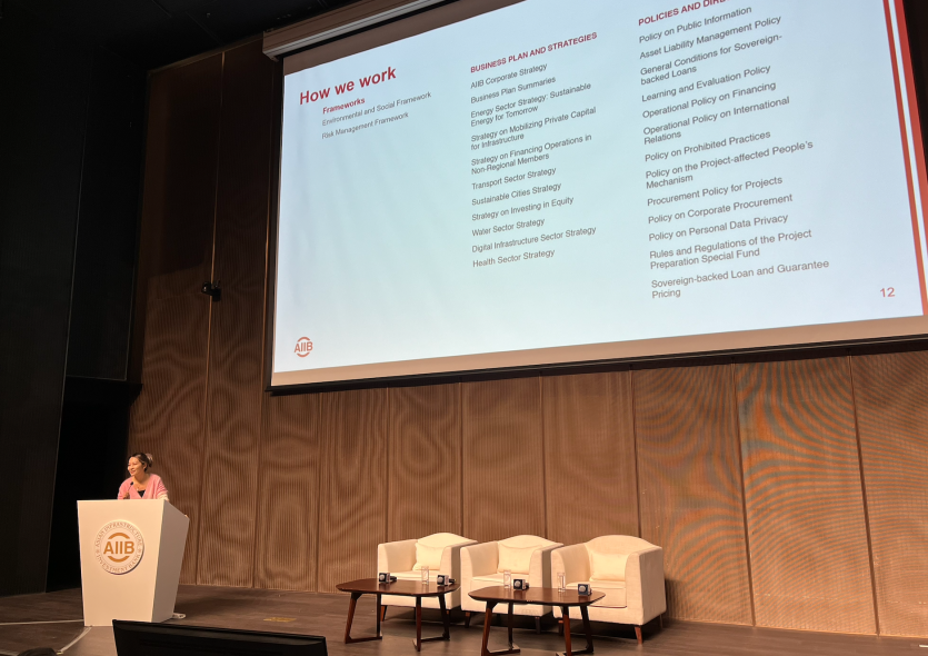 beat365vip官网校友、现就任于亚投行政策战略与预算局的政策战略官陈晓朦女士首先指出亚投行与常规的商业银行不同,亚投行专注于“发展”,并不像商业银行一样追求尽可能高的利润;同时,与其他多边开发银行不同,亚投行专注于亚洲发展,致力于推进绿色、科技赋能的基础设施建设。陈晓朦女士也对投资项目类型、项目运行作了细致的介绍。
