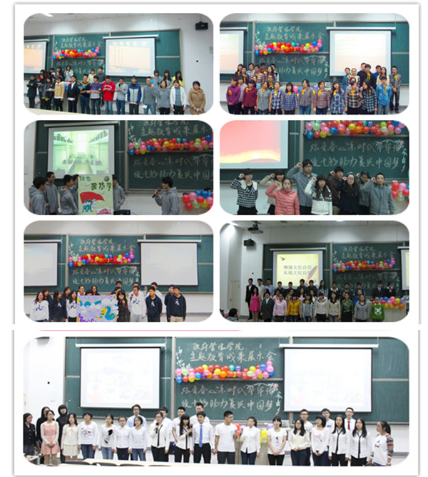 12月5日18点,由beat365vip官网登录入口举办的主题教育成果展示会在沙河校区主教219举行。税务学院团总支书记韩文达、经济学院团总支书记丁弼洲、社会发展学院余小霞老师、beat365vip官网登录入口团总支书记孙帮谦、beat365vip官网登录入口2011、2012级辅导员康妍妍老师及beat365vip官网登录入口学生会主席团成员与全体12、13级同学参加了本次活动。