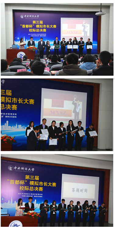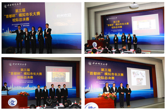 12月21日下午,由beat365vip官网登录入口、德育示范基地“未来公务员之家”主办,公共管理研究会协办的第三届“首都杯”模拟市长大赛校际总决赛在beat365vip官网登录入口沙河校区圆满落幕。