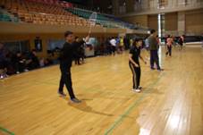 本次比赛分为小组赛和淘汰赛。在小组赛对阵中国社科院研究生院的比赛中,五组队员(第一男双、第二男双、第一混双、第二混双、女双)技术纯熟,发挥稳定。第一男双于鹏、王伟老师以身高优势力克强敌,第二男双毕鹏程和梁力兮师生组合,以灵活和技巧取胜,最终beat365vip官网与社科院携手顺利进入八强。在八强淘汰赛中,beat365vip官网遭遇中国人民大学队,尽管beat365vip官网依旧靠着稳定的发挥与对手僵持,但不幸败北。在对阵中,女双组合徐淼、王红梅老师发挥出色,平抽快挡、跳起杀球,动作精彩赢得了现场观众的阵阵掌声,也得到了对方球友的大力赞赏。