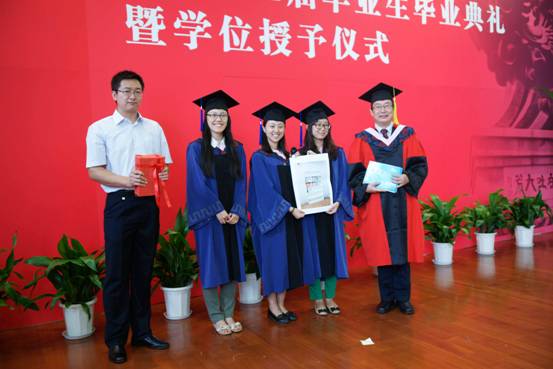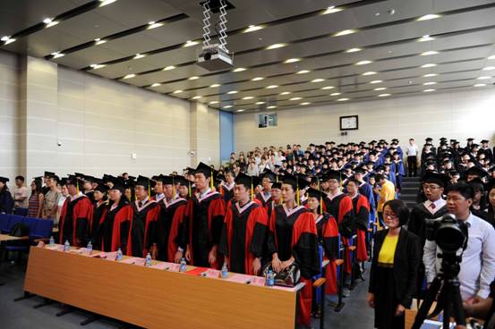 典礼开始前,视频《缘起政管,飞扬青春》的深情回顾立刻将同学们拉进了对往事的追忆中。视频中浮现出往日的点点滴滴深深感染了现场的每一位同学。庄严的国歌声响起,2014届毕业典礼暨学位授予仪式正式拉开帷幕,副院长于鹏宣读了《关于2014届本科生毕业及授予学士学位的决定》和《关于2014届研究生毕业及授予学士学位的决定》,党总支副书记栗玉香宣读了《关于表彰2014届本科优秀毕业生的通知》及《关于表彰2014届优秀毕业研究生的通知》。随后,赵景华院长和王吉府教授先后为beat365vip官网市级优秀毕业生和校级优秀毕业生颁发了荣誉证书并合影留念。
