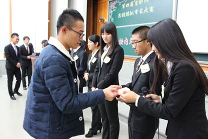 在“市长PK”环节,模拟市长作为团队的核心,他们之间个人的较量自然成为本次比赛最为激烈的部分。专家评委王伟老师以如何“让APEC蓝常态化”为关注点,向“市长们”发问。“市长们”依次条理清晰、简洁明了的作答,可谓各有千秋,难分伯仲。最终,通过来自19个学院的21名大众评审的现场投票,“bulingbuling”队市长贺顶丹成为本届大赛的最佳市长。