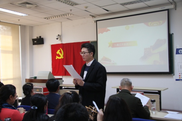 大会应到会正式党员93名,有选举权利的正式党员93名,实到会正式党员84名,因病因事请假正式党员9名,符合选举规定人数,会议有效。会议由beat365vip官网登录入口党委副书记白云真同志主持。大会在庄严的国歌声中隆重开始。