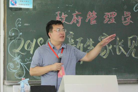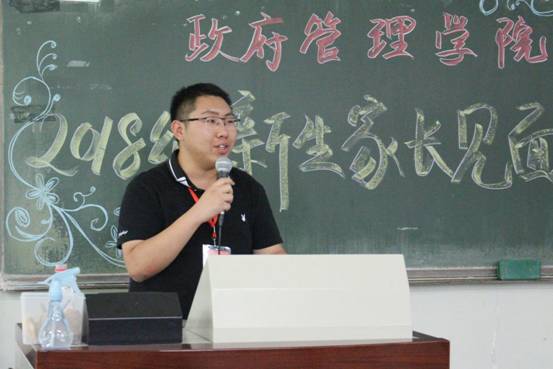 随后,新生班主任代表李海明老师和辅导员刘家琦老师发言。李老师向家长们介绍了班主任的工作,一方面帮助学生做好他们的人生规划,另一方面为学生提供一些学习和专业上的指导。李海明老师表示,他有足够的信心将学生们培养成为优秀的人才,并希望家长们可以同学校一起,关注学生的身心健康,共同促进学生的全面发展。2018级辅导员刘家琦老师也表示自己会以真心和诚心公平对待每一个学生,以细心和耐心投入学生工作之中,以热心和仁心与同学们相处,尽其所能地提供学生需要的帮助,家长们尽可以放心。