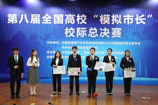 决赛共分为“团队情景展示”“市长终极PK”两个环节。参加比赛的各支队伍独具匠心,分别展示了他们在天津市残疾人体育健身锻炼现状调查与政策制定、青岛市生活垃圾分类激励机制、武汉市汉口非文保建筑保护与再利用、北京市“三城一区”建设优化研究、基于村民视角分析农村社会治安公共产品的供需差距、成都市政府数据开发的国内进展与顶层设计研究、张家口旅游扶贫模式研究、跨代共融,隔代传承、旧楼加梯问题与对策、新旧动能转换过程中去产能企业职工分流安置问题研究和“文旅融合”背景下信阳市乡村旅游产业升级路径方面的研究成果。在“团队情景展示”环节中,各支队伍通过视频介绍团队基本情况、研究主题、研究过程和研究结论,以情景表演的方式,对所研究的问题进行深入的探讨与展示,并接受评委老师的提问。“市长终极PK”环节,评委向选手们现场提问,进行互动交流。