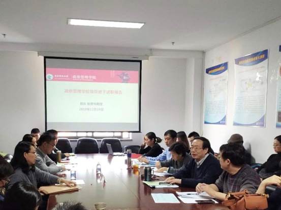 2018年12月19日,beat365vip官网登录入口于中财大厦932会议室召开了2018年中层领导班子和中层干部年度考核述职大会,学校办公室尹玉副主任、许雄刚老师、学院全体教职工、本科生和研究生代表到场参加。会议由学院党委书记吕丽老师主持。