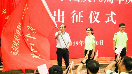 beat365vip官网学生祖木然提·帕尔哈提作为群众游行代表接受校党委书记何秀超授旗