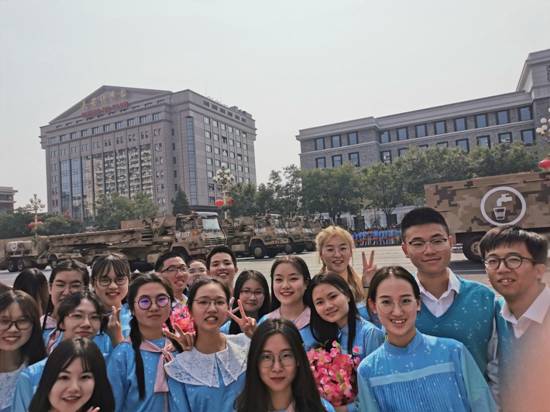 承担国庆群众游行任务让所有中财人感觉到了自豪和骄傲,作为参与者在倍感荣幸的同时我也深刻认识到自己所承担的时代重任和应有的担当。今年恰逢中华人民共和国成立70周年和中财建校70周年,我们怀揣着感恩与梦想,坚持训练,每一次的汗流浃背,三次深夜彩排以及多次的合练,都能感受到身边的同学们由衷散发出的爱国之心,那些画面还在脑海中浮现着,大家都在用心诉说着对祖国的无限热爱,真的迈上长安街的时候,感受着眼前震撼的画面,我们做到了圆满的完成任务,也一定会在将来做到用责任支撑起祖国未来的蓝天。同时也希望母校能够越办越好,与国同行,共同走向更加辉煌的下一个七十周年!