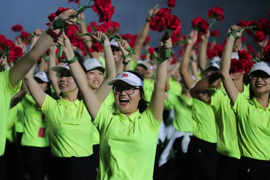 根据总指训练要求,作为主责单位,beat365vip官网不仅要完成中财大师生的校内训练,更需完成北京市国资委13家单位的整体训练任务。7月16日,游行方阵训练正式启动,beat365vip官网参加群众游行方阵的师生用10天时间在沙河校区操场上完成了基本的队列训练。7月下旬,beat365vip官网师生与国资委干部职工展开合练,1818名游行人员组成的长54米,宽49.5米的方阵集结完毕。训练过程中,beat365vip官网严格按照学校国庆专班制订的10项方阵训练核心工作方案和18项合练工作方案展开训练,训练计划细化到分,训练任务责任到人。期间共组织训练32次,其中校内训练24次,外出赴四地合练8次。在校内训练过程中,逐个攻破静态方阵拼接、手部动作教学、稳定踏乐行进,以及应急情况处置等多道难关,设定了236名框架兵、101名节奏控制兵和454名波浪终止兵,确保方阵队形稳定有序,行进速度精准无误。方阵创新训练手段,借助节拍器、步幅尺等工具,一米一米量,一秒一秒算,力争做到时间误差最小、距离分毫不差。方阵采取了变阵、歌唱、呼号等多种形式,充分表达了“自由、生动、欢愉、活泼”,得到了总指挥部和分指挥部的高度肯定。