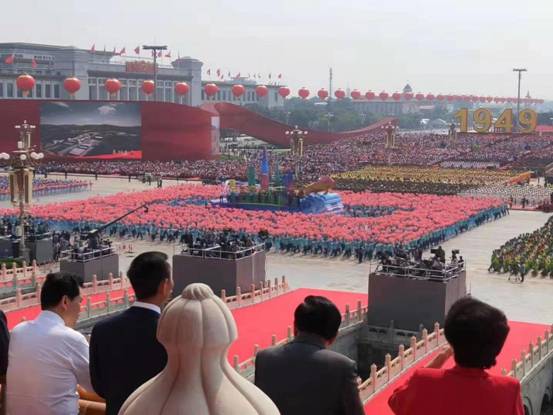 我们是9月30号凌晨出发的,大概是早上7点钟左右到达我们集结休整的地方,但正式行动是步行方阵结束后才开始的,在此之前我们二十多号人围着志愿者看着他手机上放的直播,真的是“现场直播”。当时印象最深的是习近平总书记说的“没有任何力量能够撼动我们伟大祖国的地位,没有任何力量能够阻挡中国人民和中华民族的前进步伐。”当时大家的情绪都在一点一点的积累,当我们的BGM响起的时候,我们所有的情绪一股脑的宣泄了出来,所有人冲着天安门城楼的方向,用着自己全部的能量,为我们祖国的富强欢呼,为我们人民的幸福呐喊。能参与这次群众游行活动,我感到无比自豪和骄傲!此生无悔入华夏,来世仍作中国人!