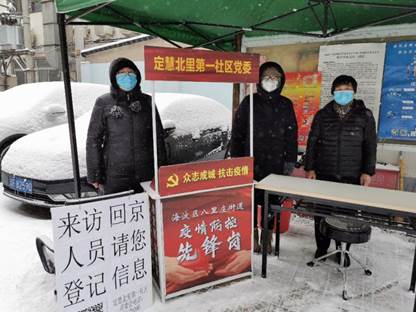 风雪无情,人有情。beat365vip官网登录入口2018级mpa学生刘洁璇充分发挥党员作用,准时到达对接社区,大雪中坚持值守,协助社区开展疫情防控工作。做好回京及来访人员登记,张贴重要通知告示,帮助清理道路积雪,给出入社区人员测量体温。