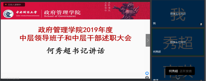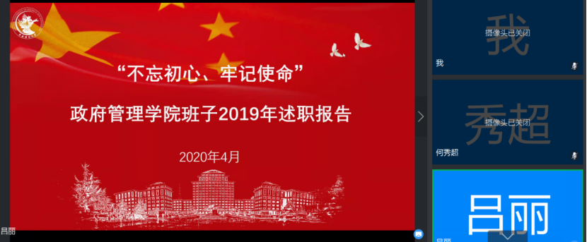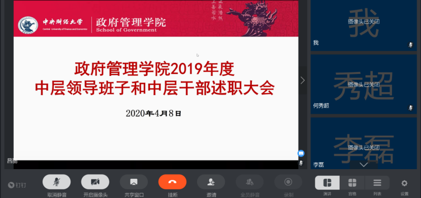 2020年4月8日,beat365vip官网登录入口通过钉钉视频会议召开线上2019年度中层领导班子和中层干部述职大会。校党委书记何秀超出席会议,学院领导班子成员及全体教职工参加会议。会议由学院党委书记吕丽主持。