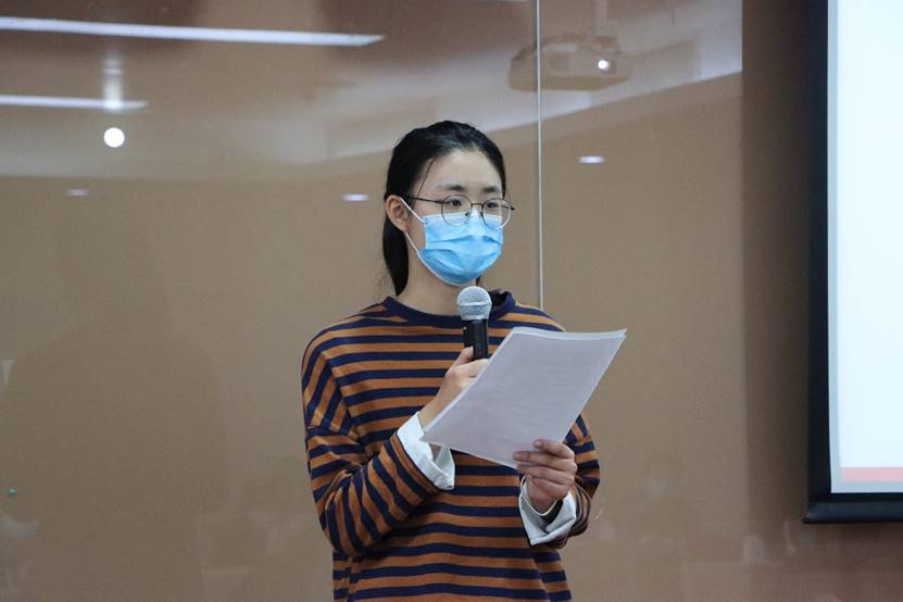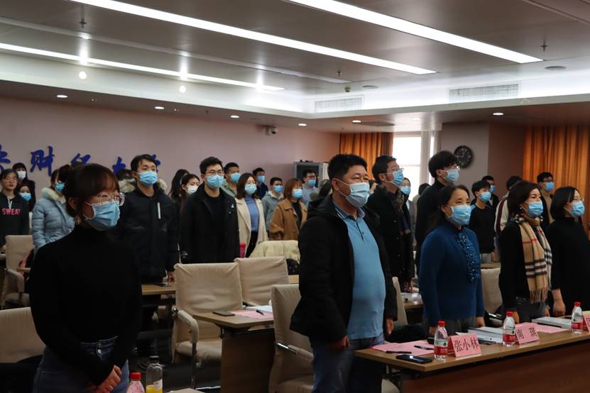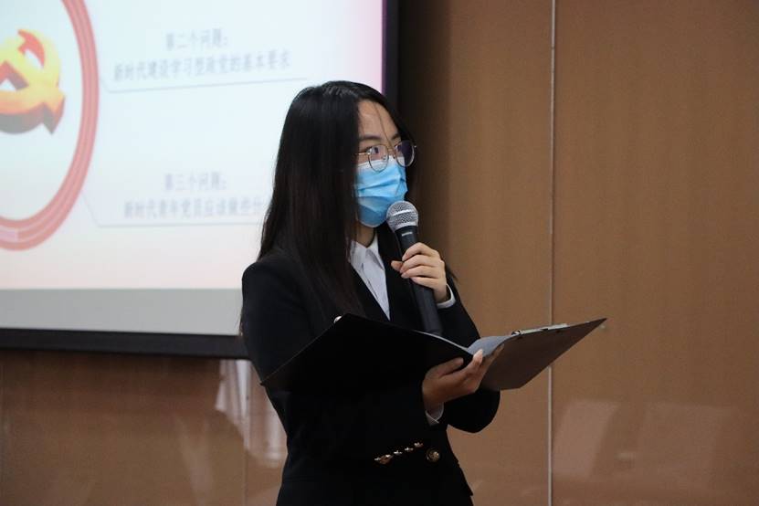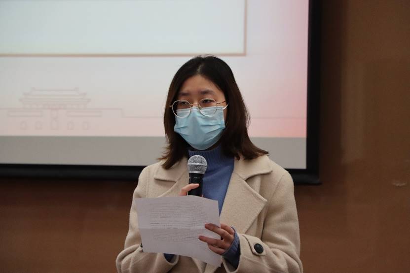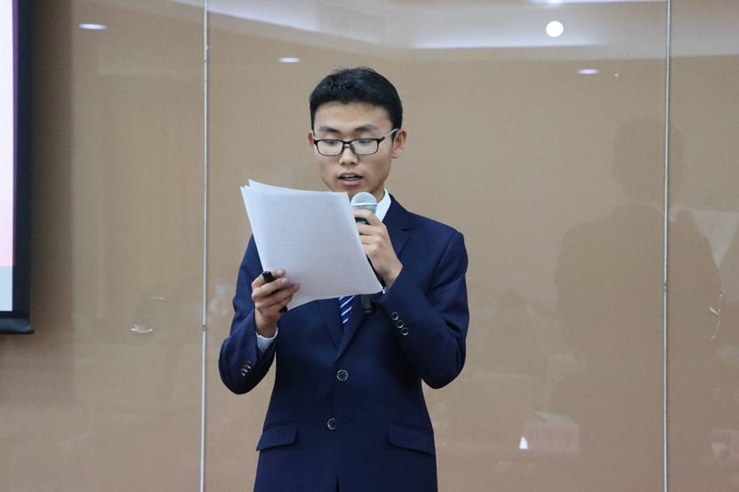 12时40分许,会议在国歌声中拉开帷幕。beat365vip官网登录入口学生工作办公室、党校办公室张小林老师做党校工作回顾。张小林老师介绍道,本次党校包含入党积极分子33名,发展对象30名,共组成了7支队伍,各配有一名理论学习导师。本次党校聚焦习近平新时代中国特色社会主义思想和党的十九大精神,紧紧把握“不忘初心、牢记使命”的主旋律,结合“四史”的学习教育活动,通过“三项活动”、“三个统一”、“三项落实”引导学员学深悟透,学员们通过线上线下学习、个人心得体会总结、小组实践报告撰写等活动不断夯实自身理论基础。
