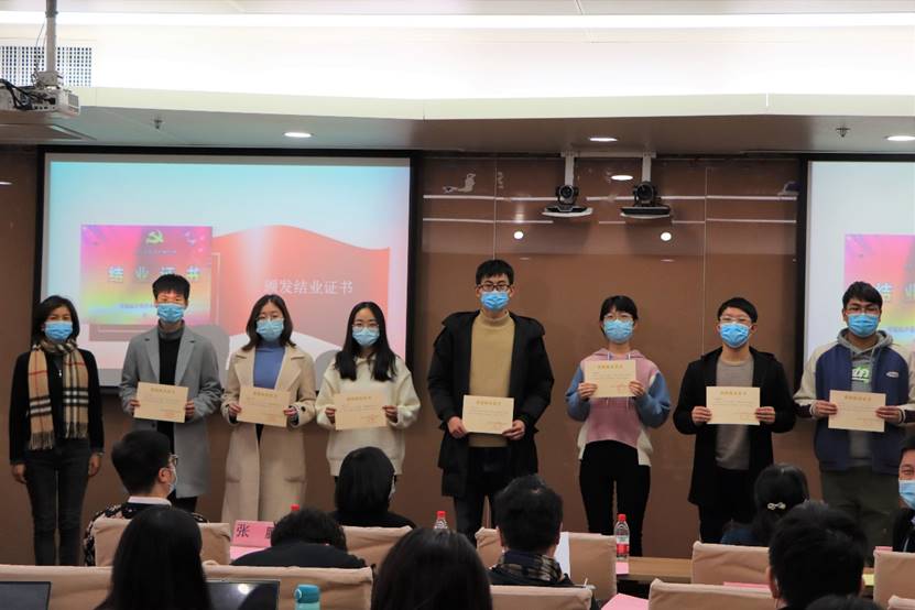 学院组织员南琪老师宣布结业决定。南琪老师宣布62名学员通过党校学习,思想素质提升,责任感与使命意识增强,顺利完成培训计划规定的学习内容,成绩合格,准予结业,随后由吕丽书记为学员代表颁发结业证书。