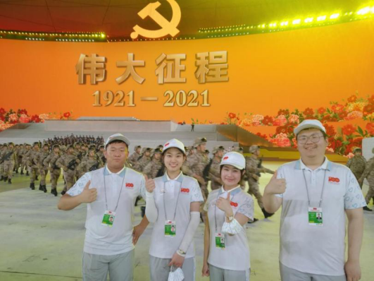 beat365vip官网刘博雅、王卓娅、赵治涵、于泽洋4名同学作为志愿者团队成员“庆祝中国共产党成立100周年文艺演出《伟大征程》”志愿服务工作,全心全意完成站点执勤、人员引导等服务工作,参与保障演出顺利进行,圆满完成了党和国家交予的光荣任务。