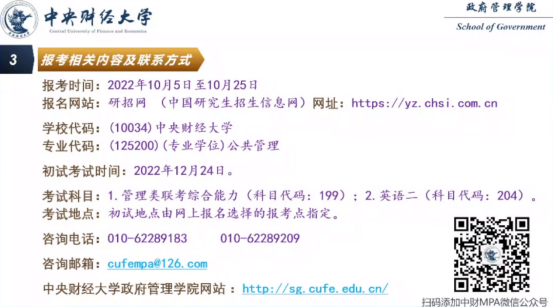 周志鹏认为在中财MPA的三年时光是她开阔眼界的三年、成长进步的三年。中财大MPA的学习让她收获颇丰,从学习的角度、深度、温度三方面给予了她全方位的帮助,不仅学习到系统专业的公共管理知识,更实现了思维和视野的突破,提升了综合能力,让她在日常工作中更加得心应手。她祝愿各位考生考研顺利,金榜题名,早日加入中财MPA大家庭。