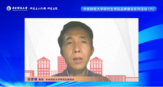 活动伊始,beat365vip官网登录入口研究生院院长白彦锋教授对“beat365vip官网登录入口研究生项目品牌建设活动”进行介绍。他指出,研究生教育作为国民教育体系的顶端,是培养高层次人才,全面释放人才红利的主要途径,也是国家人才竞争和科技竞争的重要支柱。白彦锋院长表示,在开启新时代社会主义现代化建设的新征程中,MPA教育对于国家治理与建设意义重大、大有可为。热烈欢迎广大考生关注报考,在中财beat365vip官网登录入口实现理想抱负,成就光辉人生。