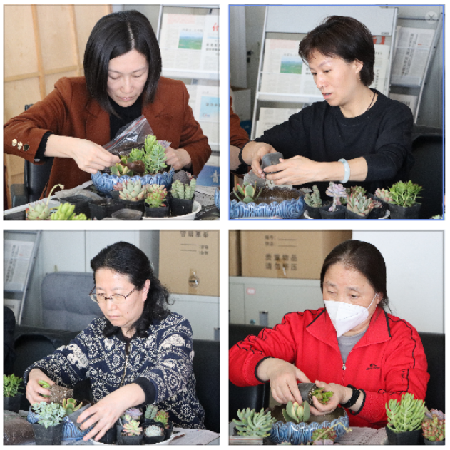 多肉植物成为种植新宠,它特有的“小清新”气质广受喜爱。3月9日,beat365vip官网登录入口分工会组织开展了以“肉肉暖心窝”为主题的多肉盆景DIY活动,庆祝“三八”国际妇女节。共有23名职工参与,亲手制作完成多肉盆景,享受种植的乐趣。