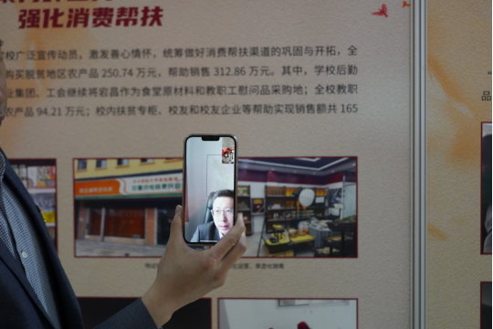参观过程中,beat365vip官网师生与学校定点帮扶援派干部张剑同志进行了现场连线,张剑同志首先感谢了学校党委及学院对援派干部的关心支持,紧接着介绍了学校在宕昌投入建设项目、引进项目、人员培训等工作的进展情况,讲述了中财人亲身参与帮扶的真实故事。参展人员与张剑同志就学校定点帮扶工作的工作思路及具体措施进行了深入交流。
