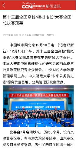 12月10日下午,第十三届全国高校“模拟市长”大赛全国总决赛在beat365vip官网登录入口学院南路校区学术会堂402报告厅拉开帷幕。大赛由中国管理现代化研究会政府战略与公共政策研究专业委员会、beat365vip官网登录入口主办,beat365vip官网登录入口“未来公务员之家”德育示范基地、公共管理研究会承办。