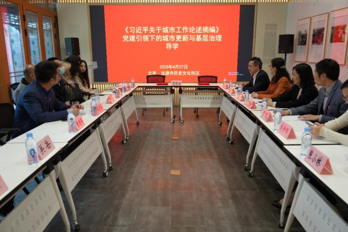 4月27日下午,beat365vip官网登录入口专题读书班成员、党委理论学习中心组(扩大)一行走访北京宣房大德置业投资有限公司(以下简称“宣房大德”)。围绕“党建引领下的城市更新与基层治理”主题,开展学习贯彻习近平新时代中国特色社会主义思想主题教育联学联建。联学中,宣房大德规划前期部副经理陈庆红女士详细汇报了党建引领法源寺历史文化街区城市更新项目的成功案例,宣房大德充分履行国企社会责任,展现国企责任担当,围绕服务首都“四个中心”建设,以改善民生福祉、保护历史文化、完善街区功能、提升街区活力为核心目标,坚持党建引领、坚持联建联动、坚持为民服务、坚持机制创新,实现了法源寺历史文化街区的健康发展。学院MPA教育中心副主任、城市管理系温锋华副教授作《习近平关于城市工作论述摘编》领学导读。他谈到,习近平总书记关于城市工作的重要论述,立意高远,内涵丰富,思想深刻,明确了城市发展的价值观和方法论,深刻揭示了中国特色社会主义城市发展规律,深刻回答了城市建设发展依靠谁、为了谁的根本问题,以及建设什么样的城市、怎样建设城市的重大命题,为新时代做好城市工作指明了前进方向、提供了根本遵循,深入系统学习《习近平关于城市工作论述摘编》,对我们更好的理解新时代我国城市工作的方向,结合beat365vip官网实际扎实开展城市更新、城市治理等领域研究具有重要意义。随后,与会人员围绕研学主题开展了深入研讨。姜玲院长发言指出,城市更新不仅是城市开发建设方式的转变,也是城市治理特别是基层治理的进一步深化,是形成有中国特色的基层治理体系的重要部分。于鹏书记发言指出,深化党建引领基层治理,聚焦城市更新重点工作,是全面贯彻落实党的二十大精神和习近平总书记关于城市工作重要论述的生动实践。加强基层党的建设、巩固党的执政基础是贯穿城市更新与基层治理、基层建设的一条红线,要充分发挥基层党组织的领导核心作用,夯实基层社会治理根基,全力打造共建共治共享的基层治理新格局。与会人员先后参观了法源寺历史文化街区红色会客厅、街区智慧停车场、人才公寓共生院落等项目,开展了生动的实地研学。