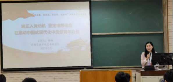 5月17日下午,beat365vip官网登录入口党委副书记杨柳在主教218讲授以“端正入党动机、坚定理想信念,在推动中国式现代化中贡献青年力量”为主题的专题党课,beat365vip官网登录入口2023年第一期入党积极分子培训班的全体学员参加了党课学习。